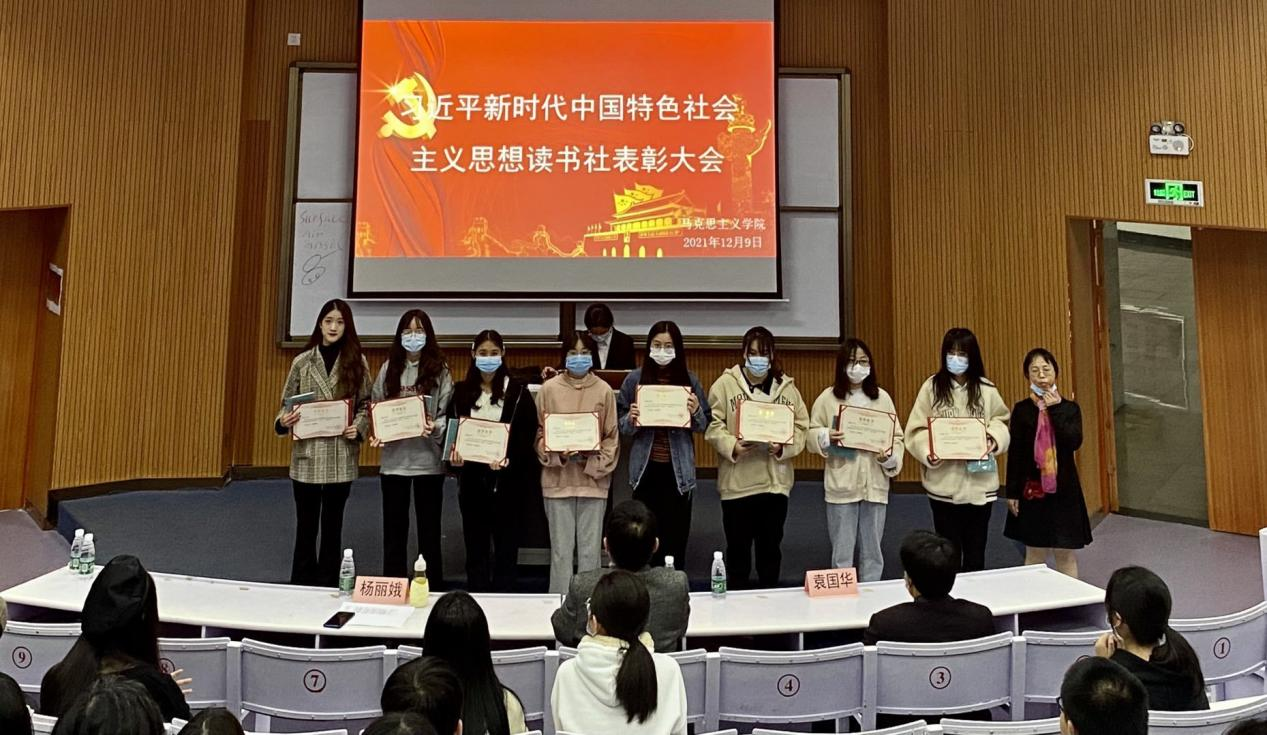 12月9日下午,yl23411永利集团习近平新时代中国特色社会主义思想读书社在博雅讲堂举办2021年度表彰大会。出席本次会议老师的有yl23411永利集团直属党支部书记李克钦、读书社指导老师杨丽娥、袁国华。
