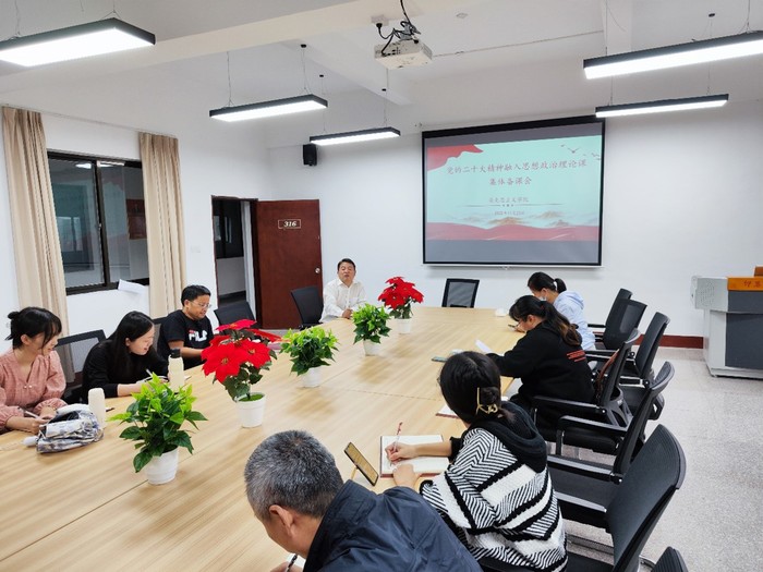 11月23日下午,yl23411永利集团全体教师在普照楼316会议室开展“学习二十大·奋进新征程”的主题党日活动,围绕“党的二十大精神融入思政课堂”进行集体备课会。