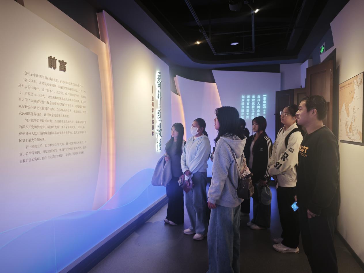 师生们依次参观了“海丝遗珍”、“侨乡记忆”等主题展厅。在珍贵文物、历史影像和互动展陈中,学生们系统了解了位于古代海上丝绸之路起点——泉州,华侨华人在推动中外文化交流、经济合作中的独特地位和重要贡献。王瑞芳老师启发同学们体悟华侨华人“爱国爱乡、敢拼会赢”的精神内核,并引导学生思考新时代青年如何传承这一精神。